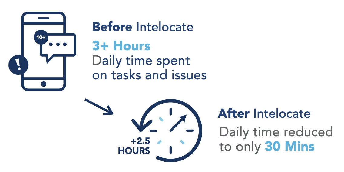 Fast forward 3 months and ADL has seen a significant change in its approach to daily operations across all of their estate. Thanks to the light-touch, fast deployment of Intelocate, ADL quickly reduced their daily time spent handling tasks and issues from hours daily to 10-30 minutes a day, citing an average of 60% time saved across the business, significantly reducing time spent sorting through emails, texts, voicemails, and spreadsheets.
